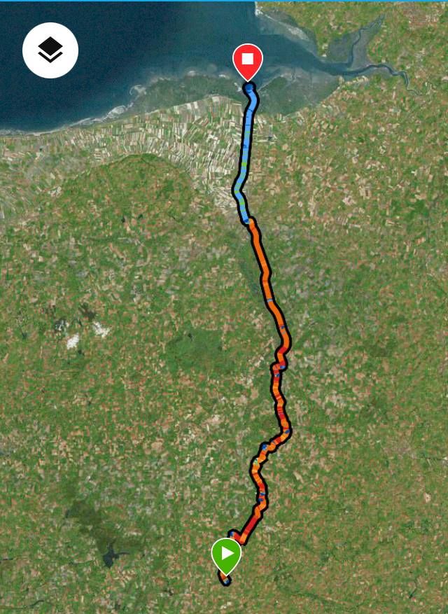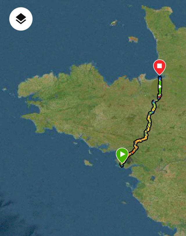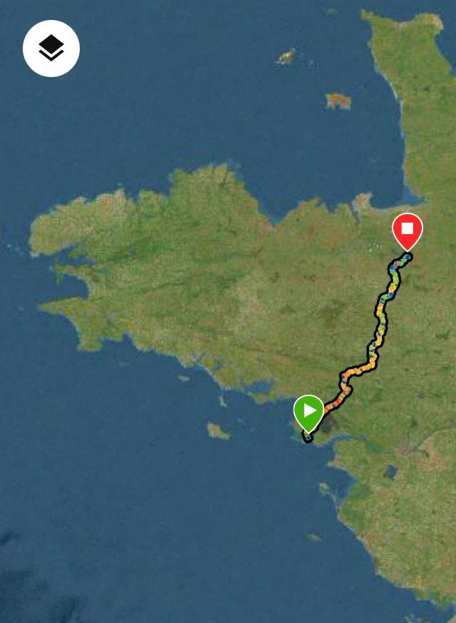 Après avoir partagé le premier kilomètre avec nos familles à La Baule, nous avons parcouru 195 km sous une pluie continue pour arriver à 5h du matin à Sens de Bretagne.