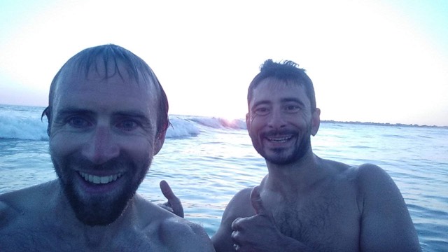Décidés à croquer ce périple à pleine dents, la baignade au coucher du soleil à St Gilles Croix de Vie s’est imposé comme un évènement incontournable du voyage. Cerise sur le soleil, un couple nous laissait deux bières sans alcool et des pistaches pour l’apéro !