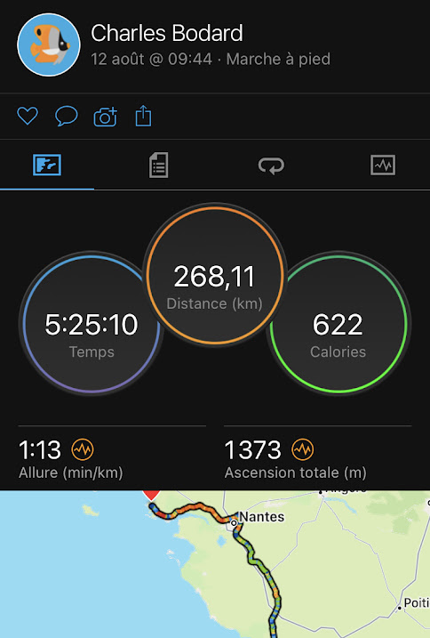 Après c’est Vanessa qui m’a récupéré et avec qui j’ai fait le tour de la rocade de Nantes jusqu’à Orvault. (Les embouteillages m’ont permis de lui transmettre mon calme olympien et les déviations de lui faire profiter de mes qualités d’orienteur…)