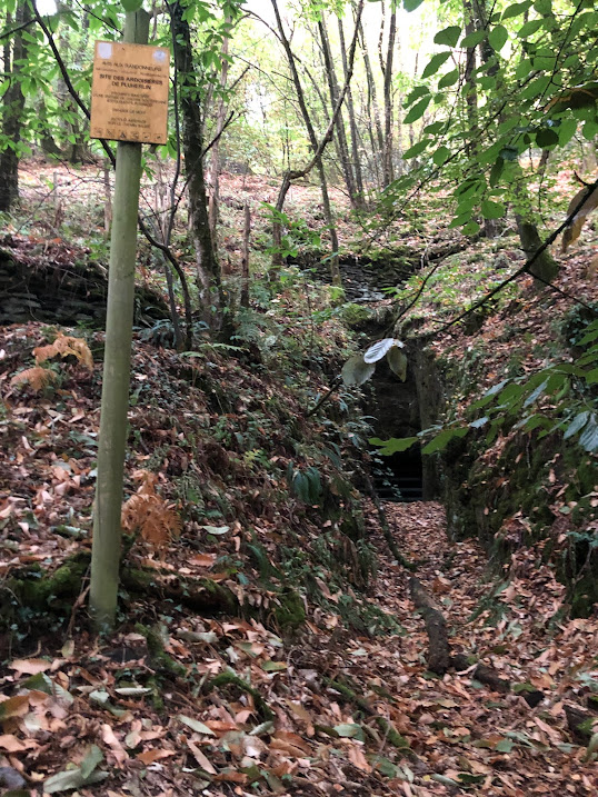 Mais juste avant, cette même curiosité me pousse en chemin à aller découvrir les entrées de mines à ciel ouvert qui percent la colline en face du hameau et dont j’ignorais jusqu’ici l’existence.