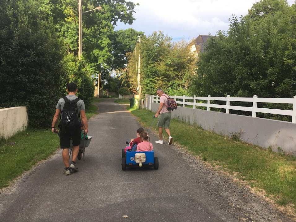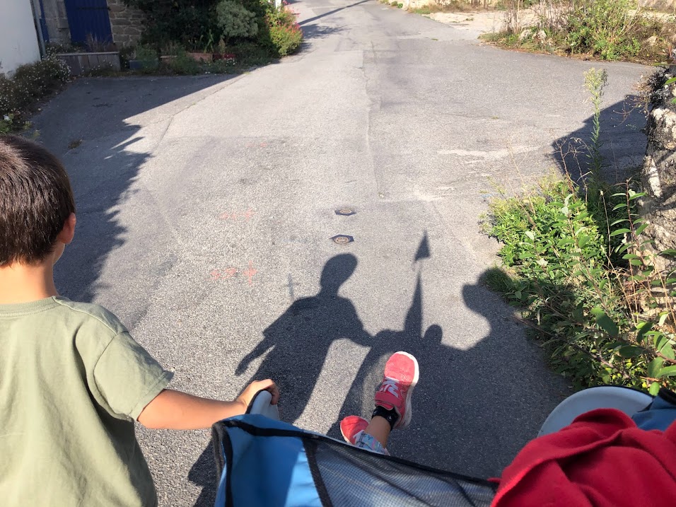 Le matin même, après les avoir déposé à l’école, j’avais attaché la remorque à la maison de l’enfance. Du coup j’avais quand même une sécurité pour leur permettre de se reposer en les poussant dans la remorque.
