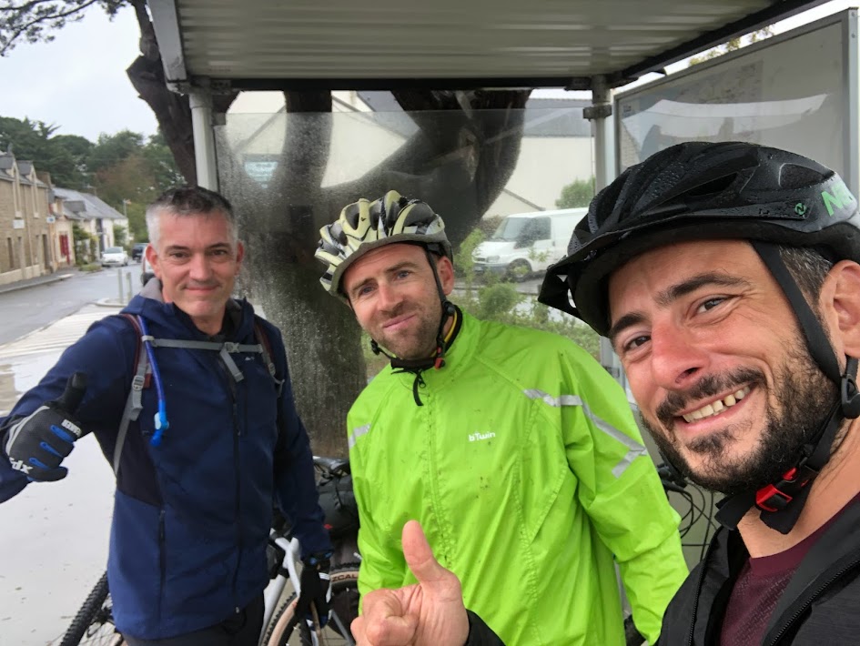A St Molf, on retrouve Nico (mon coéquipier de l’itinérance sans argent et sans provisions) qui avait roulé depuis Batz-sur-mer.