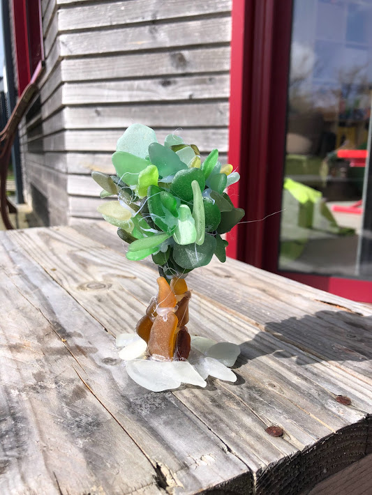Arbre réalisé par mon fils avec 100 morceaux de verre polis récupérés sur la plage.