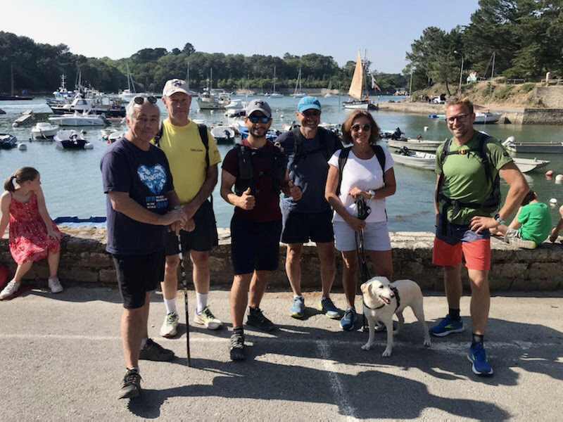 Durant le week-end précédent à Belle-île j’avais proposé le projet à mon ami Nico qui avait aimé l’idée. Étant peu motivé pour marcher 14h (entre 65 et 70 km), seul, de nuit ; je n’étais pas mécontent d’avoir trouvé un coéquipier avec qui partager ce nouveau défi. Pour me donner un maximum de chance d’être accompagné, j’avais également lancé des appels à partager le parcours sur les réseaux sociaux. C’est ainsi que Vincent, Dominique, mon père et ma belle-mère, nous rejoignaient au départ chez Tanguy.