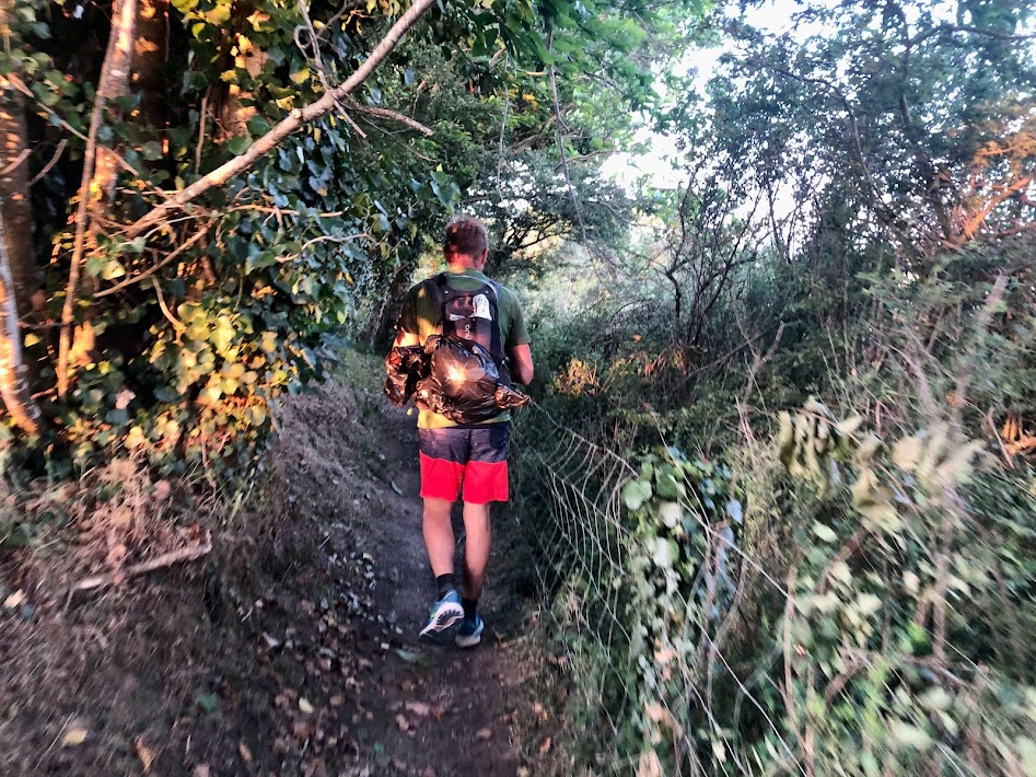 Nous faisons maintenant route vers Arzal. Tout est plus long en marchant et les kilomètres se traduisent en heures d’efforts. Nos jambes commencent à accuser le coup. Sur cette portion, le sentier est un peu plus technique et ombragé. Nous tenons bon, sans sortir nos lampes frontales du sac.